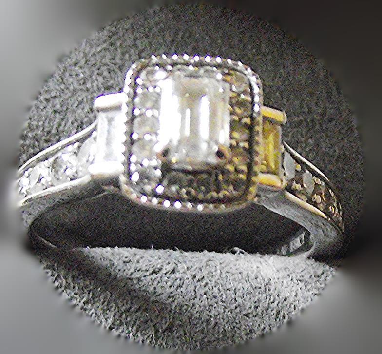 Super quality fully hallmarked 18ct Diamond cluster with central emerald cut diamond surrounded with