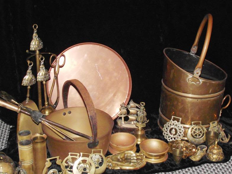 Selection of assorted brass wares inc coal scuttle , horse brasses , ornaments etc.