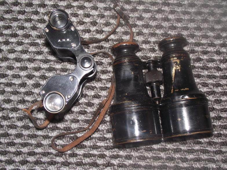Pair of WW2 extending Lens shield cover field glasses marked Samuel Harris + set of field glasses stamped
