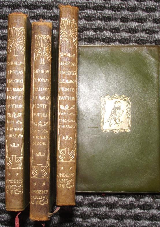 Rare set of books green calf leather bound books Morte Darthur: Part The First The Second, Part