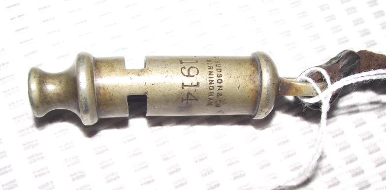 Genuine WW1 Antique British Army 1914 Trench Whistle J Hudson & Co with original leather carrying strap