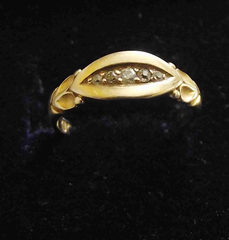 18ct 5 stone diamond ring in unusual bow setting 2.6g approx. size M