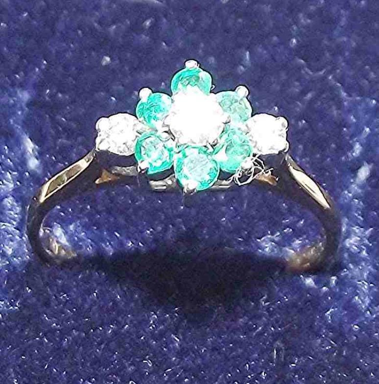 18 ct gold cluster ring emerald & diamond stone set 1.8g approx. size J ½
