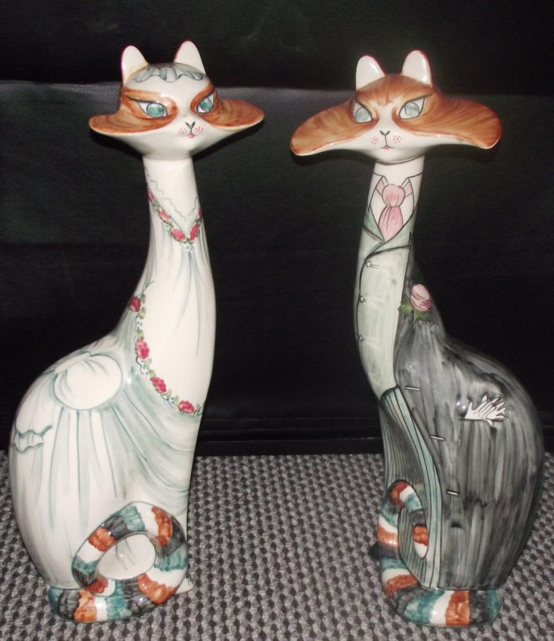 David Sharp for Rye Cinque Ports Pottery: Two Large Figures Bride and Groom, modelled as cats with pronounced
