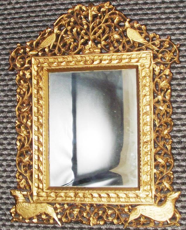 Nice Gold coloured oriental/ Asian style hand fret cut mirror with birds and dogs carved in foliage