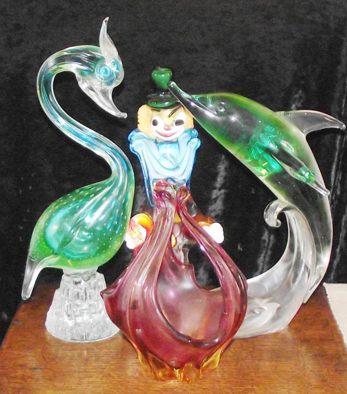 4 x pieces of Murano style glass inc Dolphin & Clown Etc.