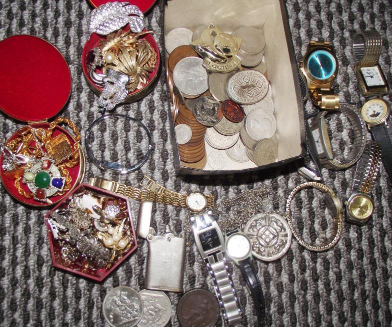 3 x assorted small boxes of plated and Diamante costume Jewellery + large assortment of various watches