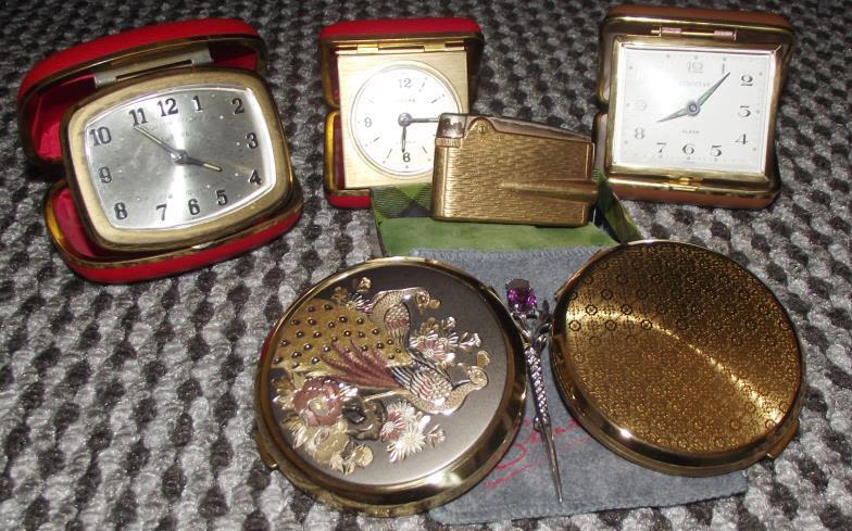 Ronson lighter Scottish thistle pin brooch + Stratton compact + 1 other compact