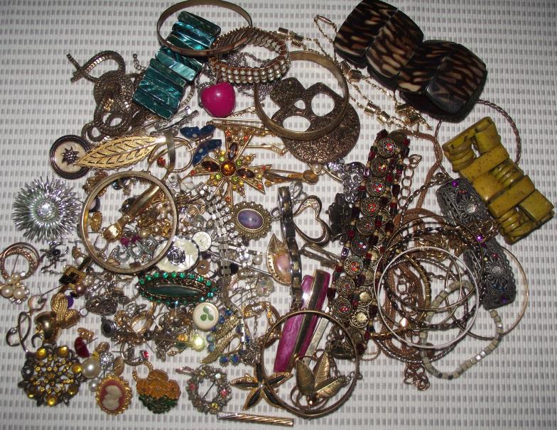 Nice selection of assorted vintage costume Jewellery inc earrings, brooches, pendants, bangles Etc.