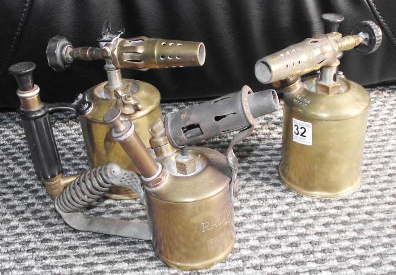 3x Antique Swedish brass blow torches inc max Sievert type 223 , Radius ltd 47, & 1 marked Sweden with