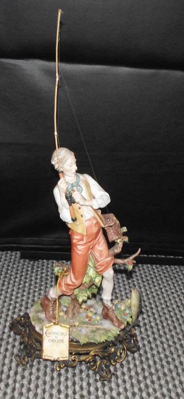 outfit landing a large fish. Signed on base “Benacchio” and a trademark of an anchor. SIZE: 21-3/4″ h good condition overall