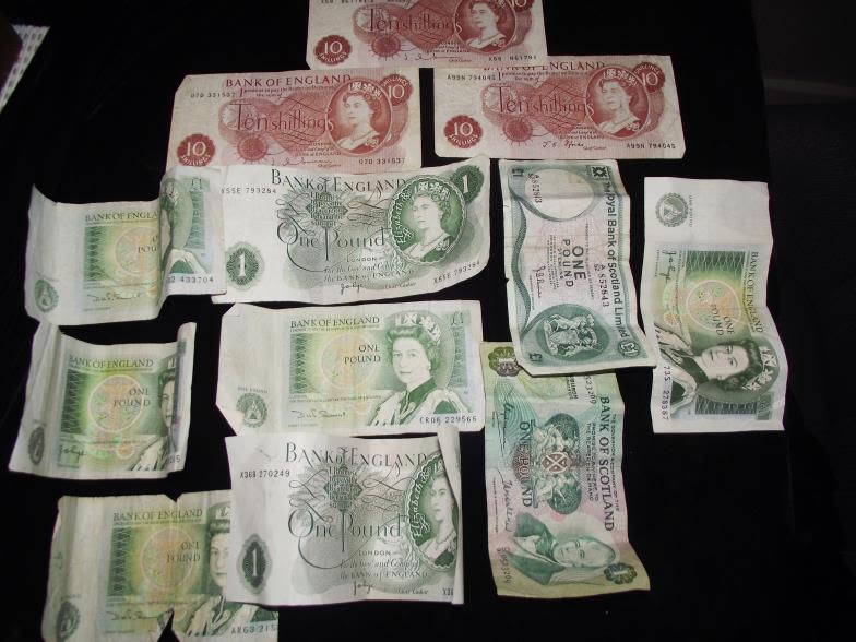 Selection of old £1notes inc 7 x £1 notes 2x Scottish notes , 3x old 10 shilling notes