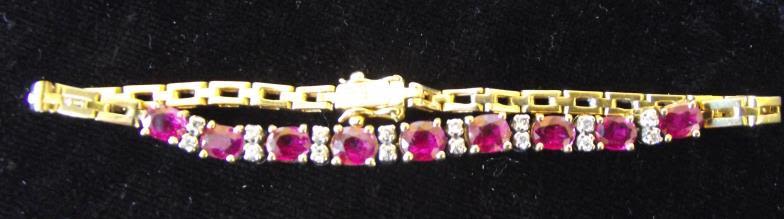 Lovely quality ruby and diamond set bracelet 9 rubies separated with 2 small diamonds in between each
