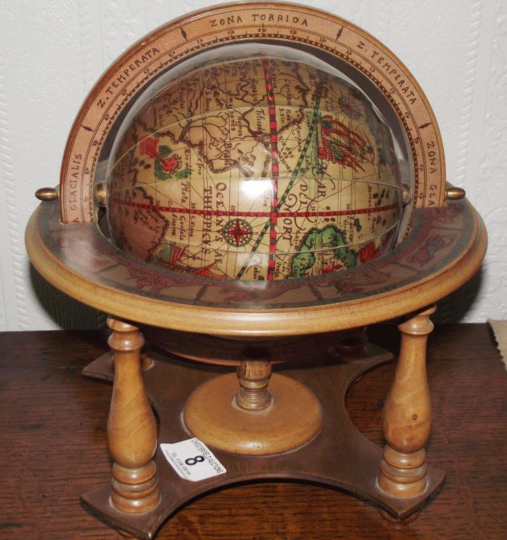 Small wooden table top rotating celestial globe