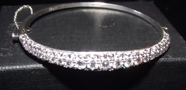 Superb quality hinged 18ct marked white 5.5cm diameter Gold bangle set with 22 superb quality graduated