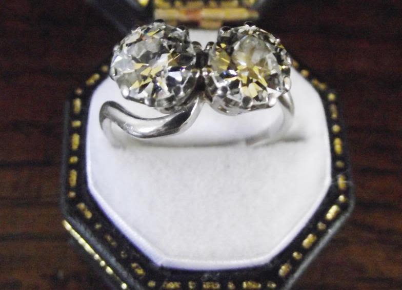 ( Unmarked ) tested gold set with 2 large quality diamonds of estimated 1.5ct each approx size H