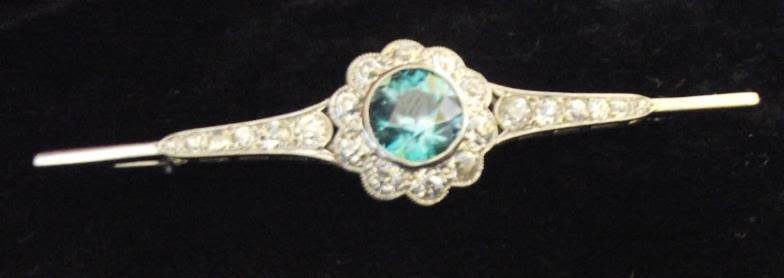 Lovely Art deco style pin brooch of elongated form with central flower head formed with large estimated
