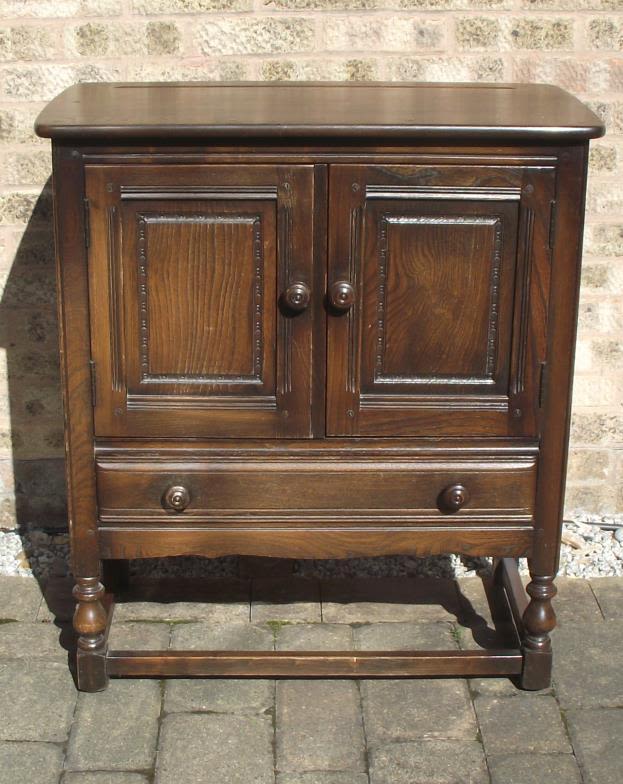 Small Ercol colonial 2 door cupboard with draw below Height 87 cm x 79 cm x 42 cm approx.