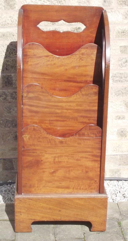 Nice mahogany water fall front free standing magazine rack with pierced carrying handle