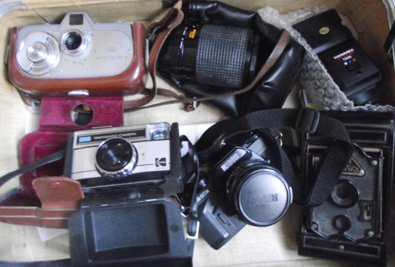 Collection of assorted cameras inc old Rajar No6 folding bellows camera 1950s Zeiss Ikon Movikon