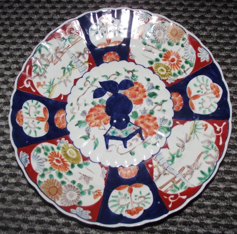 Lovely lobed edge 19thc Japanese Imari charger in iron red and blue palette with central pattern painted