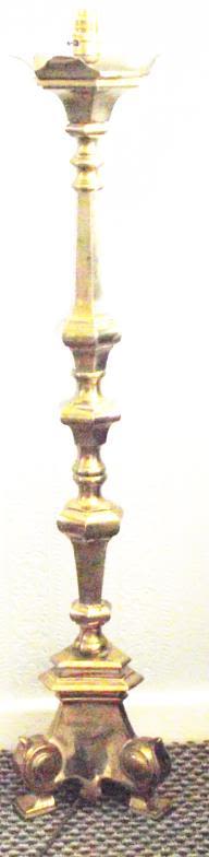 Lovely quality tall Heavy Brass reading lamp base in the gothic style raised on 3 scroll feet , . Outstretched