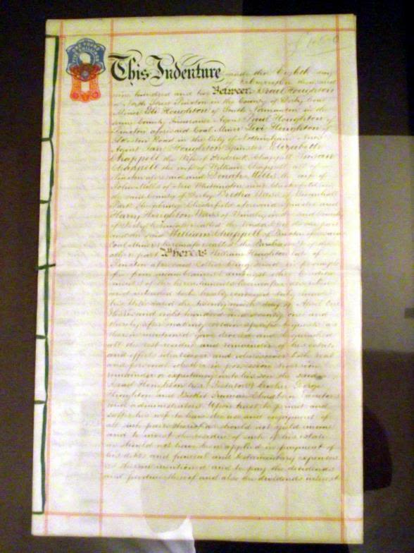 Framed and glazed Indenture dated 1902 between stamped one pound and five shillings ( between Neael