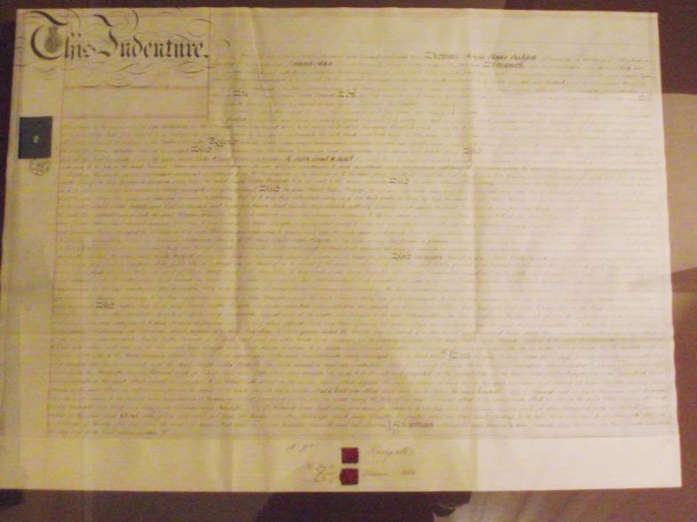 Large framed and glazed indenture 30×38” 1968 copy of a five shilling indenture from 1869 between