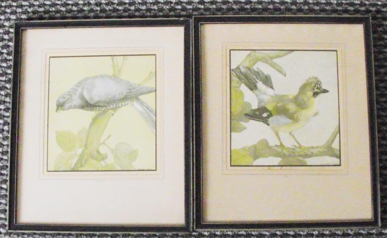 2 small 14x 12” approx. watercolours of birds ( Cuckoo & Jay signed Stuart Mills