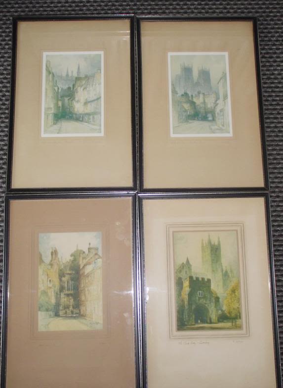 2 framed and glazed York Westminster prints by F Robson and 2 watercolours by the same artist The back