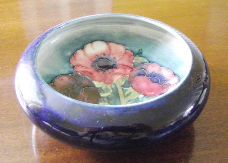 Moorcroft small footed bowl anemone pattern impressed Moorcroft made in England to base with paper