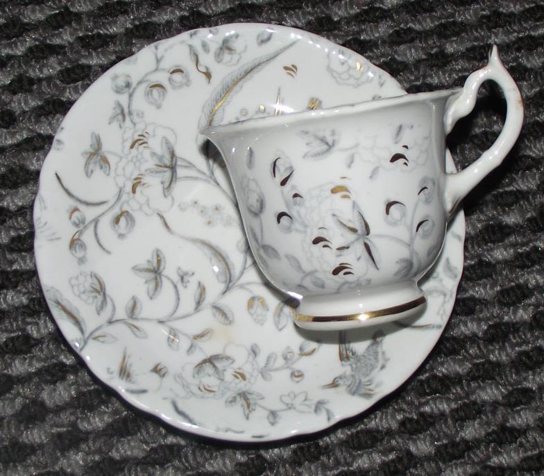Rare antique 1840s Rockingham Brameld cup & saucer with puce griffin mark pattern no 1300