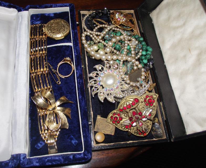 2 x small boxes of assorted costume jewellery inc some good plated pieces