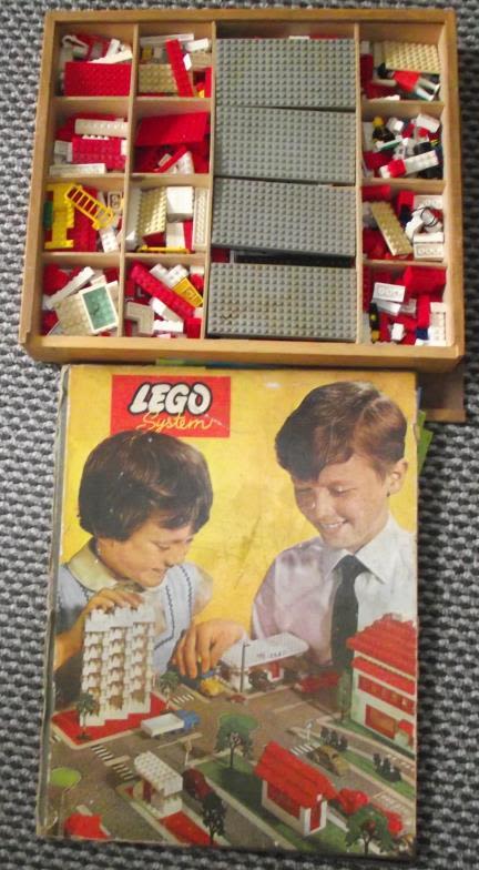 large boxed collection of assorted vintage and new Lego + genuine 1962 vintage Lego town plan board