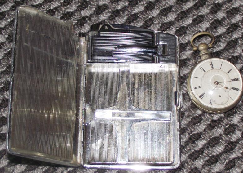 metal cigarette case with crocodile skin style outer casing with built in removable Ronson lighter
