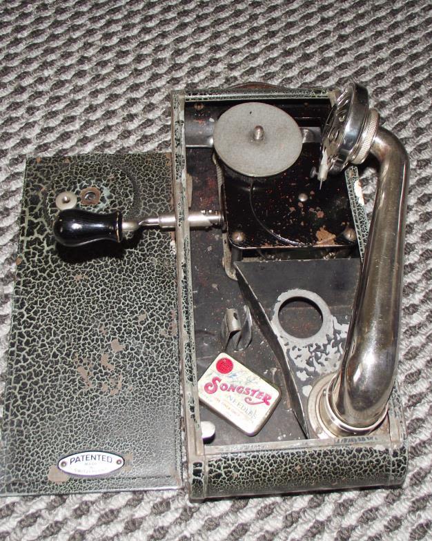Rare Antique Excelda portable windup phonograph /Gramophone Record Player . Complete with spare stylus.