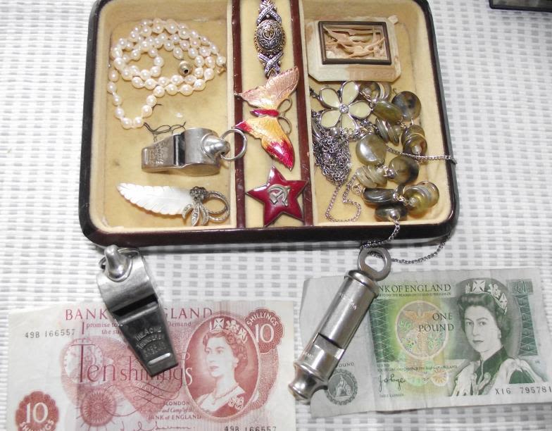 2x Acme thunder whistles + Metropolitan whistle + white Unusual white metal cigarette case with detachable