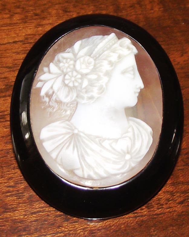 Victorian Whitby jet cameo brooch carved with female portrait Smaller Victorian Whitby jet brooch