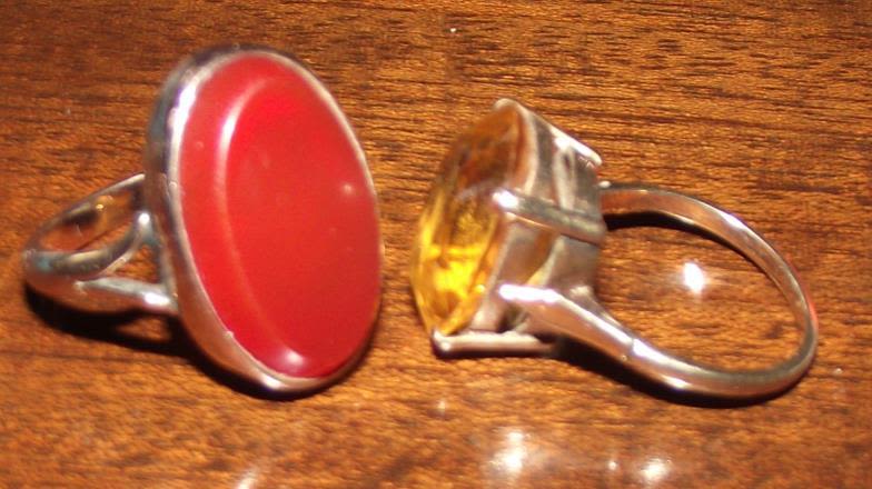2x 9ct gold dress rings 1 with large faceted cut ( slight damage to stone and 1 with red oval cut