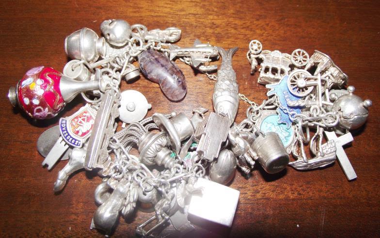 Substantial charm bracelet full of charms mainly all silver 113g approx.