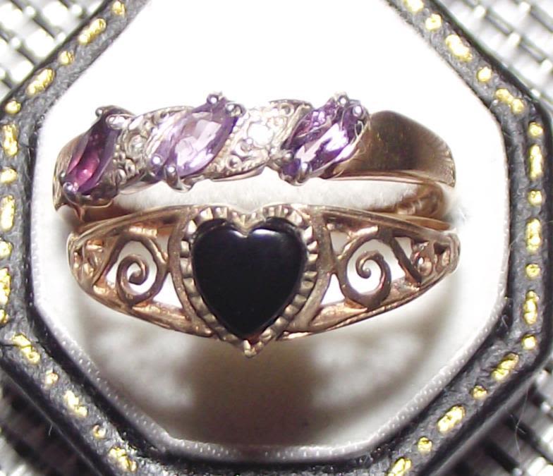 2x quality ladies 9ct Gold rings 1 heart shaped central stone & 1 stone set with amethyst and diamond