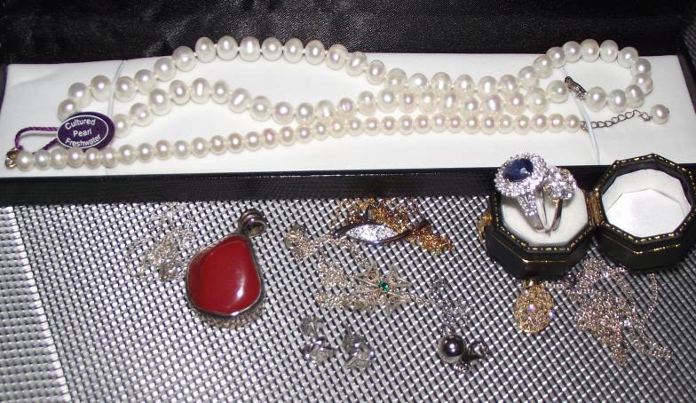Nice quality selection of silver stone set pendants, rings, chains , earrings Etc. + Silver clasped