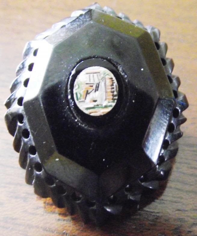 Small Victorian Whitby jet brooch with Micro mosaic central panel 3.5 x3 cm approx.