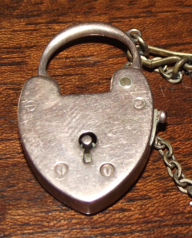 9ct Gold padlock & safety chain 3.9g approx.
