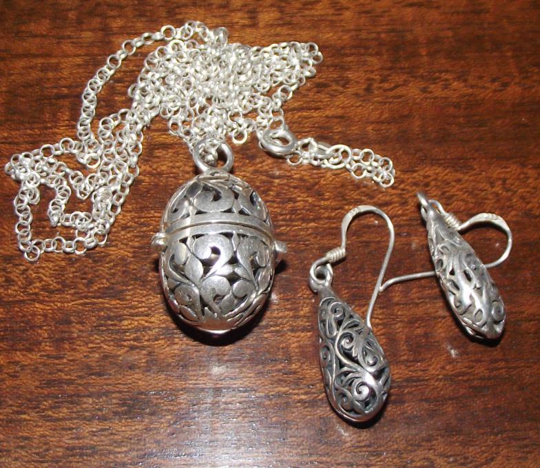 Unusual silver locket shaped pieced Pomander/perfumer/smelling salts on silver chain ( marked internally