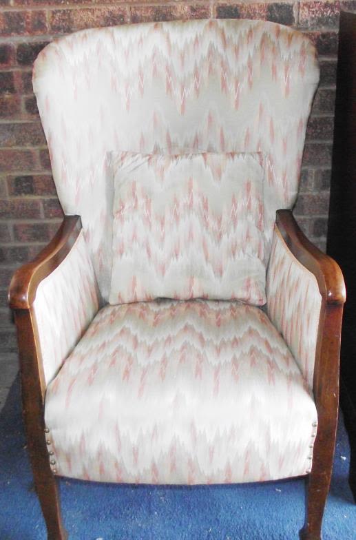 Good quality Antique mahogany high back wing backed upholstered arm chair