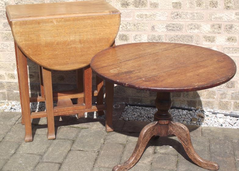 Small fold out drop leaf table by CWS Radcliffe + Small oak pedestal table ( base & top a marriage