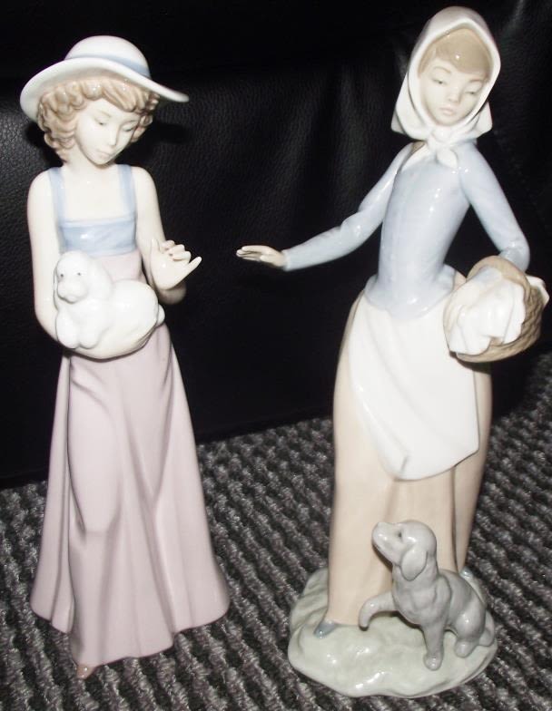 Nao figurine girl with puppy at her feet B270 approx 10” high + LLadro /Nao figure 1157 pampered poodle