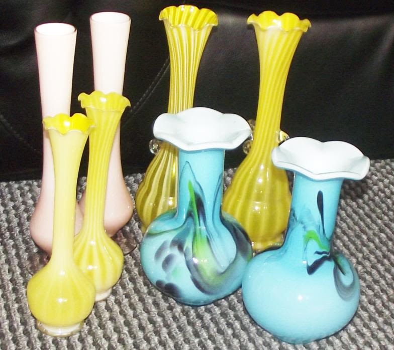 Small collection of hand blown glass vases in pairs (4 pairs)