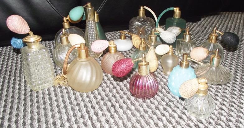 Collection of vintage glass Perfume bottles Inc. opalene glass frosted glass , iridescent glass etc